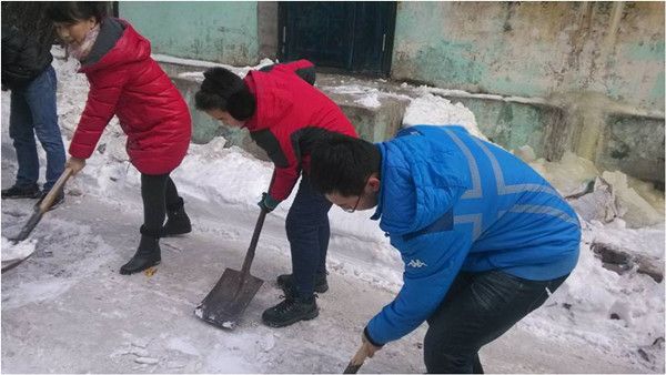 经过将近两个小时的奋战,此次扫雪任务基本完成。将楼区内厚达十几厘米的积雪和冰铲除,清出了一条足够车辆通行的道路,避免了行人在楼旁行走被砸伤等事件发生。
