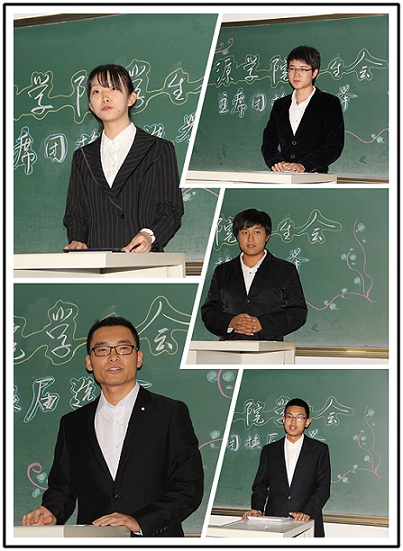 各项活动的开展情况与获得成果,最后又以一位学姐的身份表达了对学弟妹的期许,言语诚恳动人。总结结束,张越老师为上届主席团成员吴琳琳,范淑佩,刘超逸,潘源,刘佳宁颁发聘书,感谢他们在过去的一年中对学院所做的贡献。随后,学生会主席团换届选举正式开始。