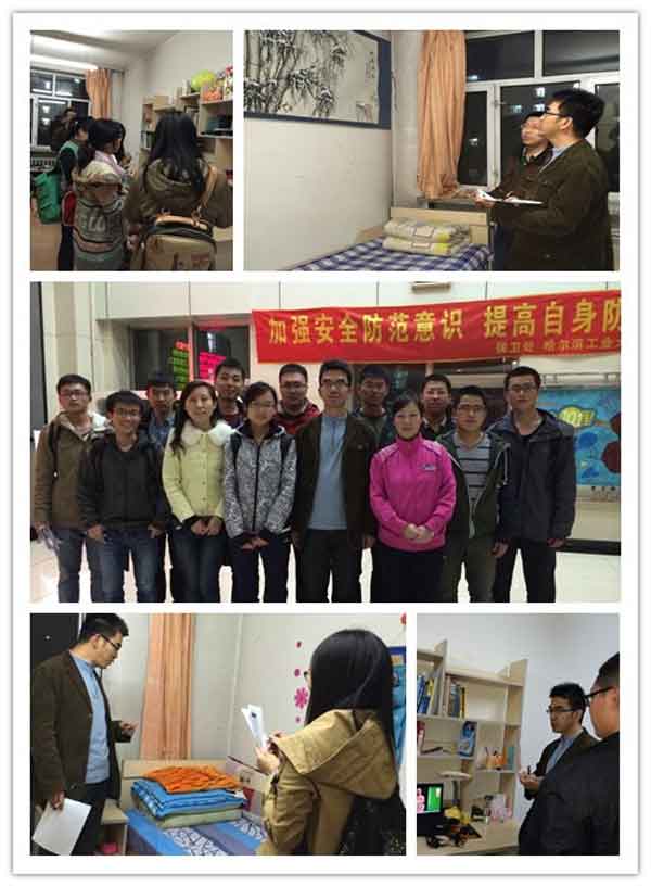 太阳城网络赌博平台 研究生协理员李峰老师、学生会主席团成员和各部部长及男女生代表作为评委走访了太阳城网络赌博平台 2014级硕士所在的十二公寓、十五公寓各寝室。走进宿舍后,评委们各进其职,有的查看室内布置,有的检查卫生,有的拍照等。干净整洁的寝室给评委们和阿姨留下了深刻的印象,而很多寝室简洁而有创意的布置风格也让大家感受到太阳城网络赌博平台 学子们良好的学习文化氛围。在走访中,李峰老师也详细询问了大家的学习生活情况,鼓励大家利用良好的文化氛围,努力充实自己,成为祖国栋梁。