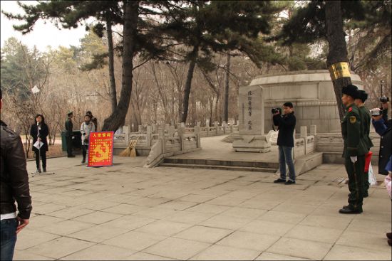 志愿者一同祭扫和参观了哈尔滨市烈士陵园。活动由花园街道办事处马主任主持,同志们在陈翰章将军墓前举行了祭扫仪式。