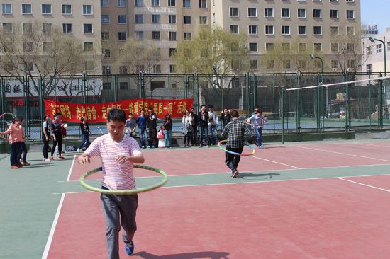 学生会体育部和1302404团支部联合承办,学院总计7个团支部报名参赛。参赛队员转着呼啦圈走过20米折返,再将呼啦圈传递给下一个队友,以总计耗时来决定名次。比赛现场紧张有序,选手们在比赛过程中或敏捷、或笨拙的脚步,密切配合的团队氛围以及不甘示弱的精神面貌,使现场气氛达到了高潮,欢笑声、呐喊声,不绝于耳,运动场成了欢乐的海洋。