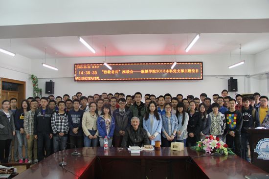 2013级本科生党支部于动力楼619室举办了“致敬抗美援朝老兵”主题座谈会,抗美援朝参战老兵田永生作为特邀主讲人参加了座谈会。