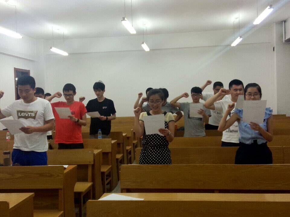 在副班长孟颖超同学的主持下,同学踊跃发言,积极参与,班会有序进行。首先进行的是学长交流,张伸展学姐为我们分享了她的学习经验与心得以及大学的生活经历,并悉心解答同学们的问题,为同学们答疑解惑。班会第二项是评选“最美课代表”,经过激烈角逐,孟颖超同学全票当选“最美课代表”。班会第三项是“班长帮你定计划”,班长根据本班同学的学习情况和课程要求,征求全班同学意见及建议后制定了一套完整的适合全班同学复习的学习计划。班会进行到最后一项,诚信考试宣誓,在副班长孟颖超同学的带领下,同学们进行了诚信考试的庄严宣誓,并在诚信考试承诺书上签上了名字,主题班会也随之迎来尾声,获得了圆满的结束。