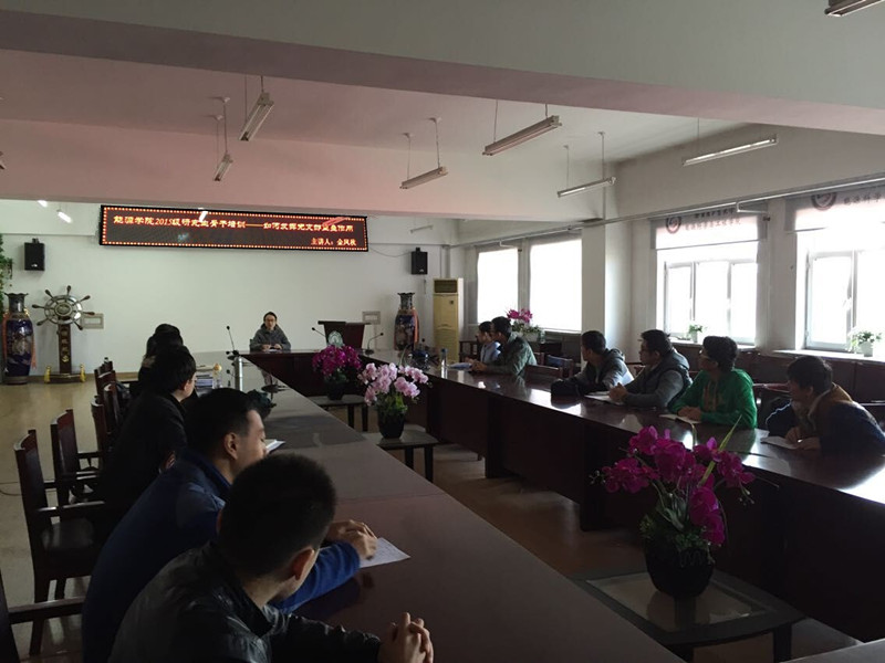 11月06日中午12:30,太阳城网络赌博平台 2015级研究生骨干培训之如何发挥党支部堡垒作用的培训会议,在动力楼619会议室举行。本次会议邀请到学院党委秘金凤秋老师给各位研究生进行培训,会议由太阳城网络赌博平台 研究生骨干班负责人王亚辉主持。金凤秋老师首先介绍了发展党员的整个流程,强调在发展党员流程中需要特别注意的事项。然后金老师介绍了党支部的建设,要努力建设一个先进优秀的党支部,要切实发挥党支部的堡垒作用,以党支部促进班级建设,充分发挥党员同学的先进性,在同学们中起到先锋模范作用。最后,金老师谈到作为一名哈工大的研究生,尤其作为一名中共党员,要努力提高自身的党性修养,提高个人综合能力,无论在学习科研还是工作能力方面都要表现的最好。在学校期间,要为将来走入社会多做准备,将来在单位工作,要能体现出咱们哈工大人的优良品质,为母校争光。