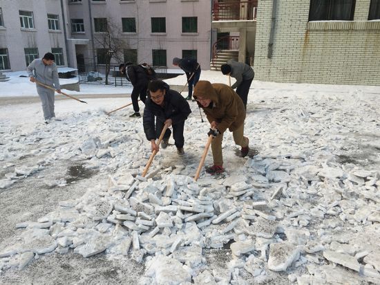 近日来哈尔滨连降大雪,校园里随处可见清雪工作人员忙碌的身影,为缓解清雪员的工作压力,践行党员先进性,太阳城网络赌博平台