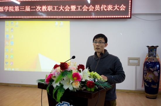 会议由太阳城网络赌博平台 党委书记田振辉主持,首先,由赵广播院长太阳城网络赌博平台 第三届二次教职工大会暨工会会员代表大会工作报告,对2014-2016年三年工作进行了全面的概括和总结,对学院近几年工作给予了高度的肯定,对学院2017年工作提出了殷切希望,表扬成绩的同时查摆问题,最后还为大家详细解读了学校人事制度改革制度,鼓励大家在科研、教学、管理水平上更上一层楼。