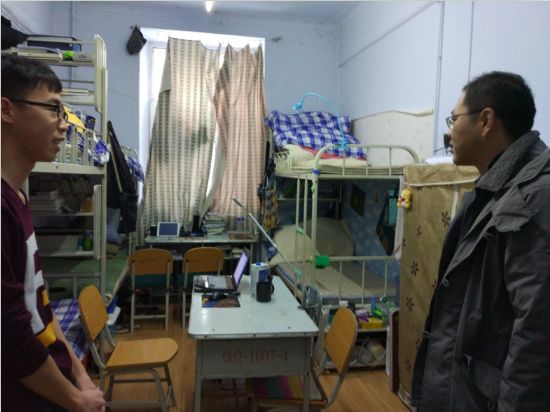1月13日下午15点,在学生离校之际太阳城网络赌博平台 党委副书记孙垠以及辅导员到二公寓进行了走访,了解学生离校和寒假生活情况,并对寝室卫生与安全情况进行假期前的排查。