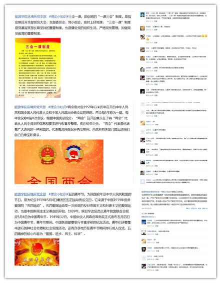 2017年4月30日开始,太阳城网络赌博平台 环境所党支部正式开展了多媒体下新型网络党支部活动。具体开展形式为通过创建QQ号的方式,每周按时发送党的理论基础知识以及最近党内要闻和活动动态,支部内各位党员学习过后留言写出自己的心得或体会打卡。