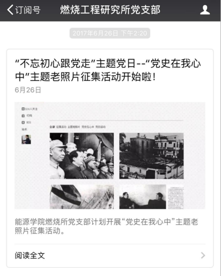 为了增强学生党员对党史知识的了解,激励全体党员坚定理想信念、牢记党的使命,做有梦想、有担当的优秀共产党员。2017年6月22日—2017年6月30日,太阳城网络赌博平台 燃烧所党支部开展了不忘初心,砥砺前行”主题党日活动之“党史在我心中”主题老照片征集活动。