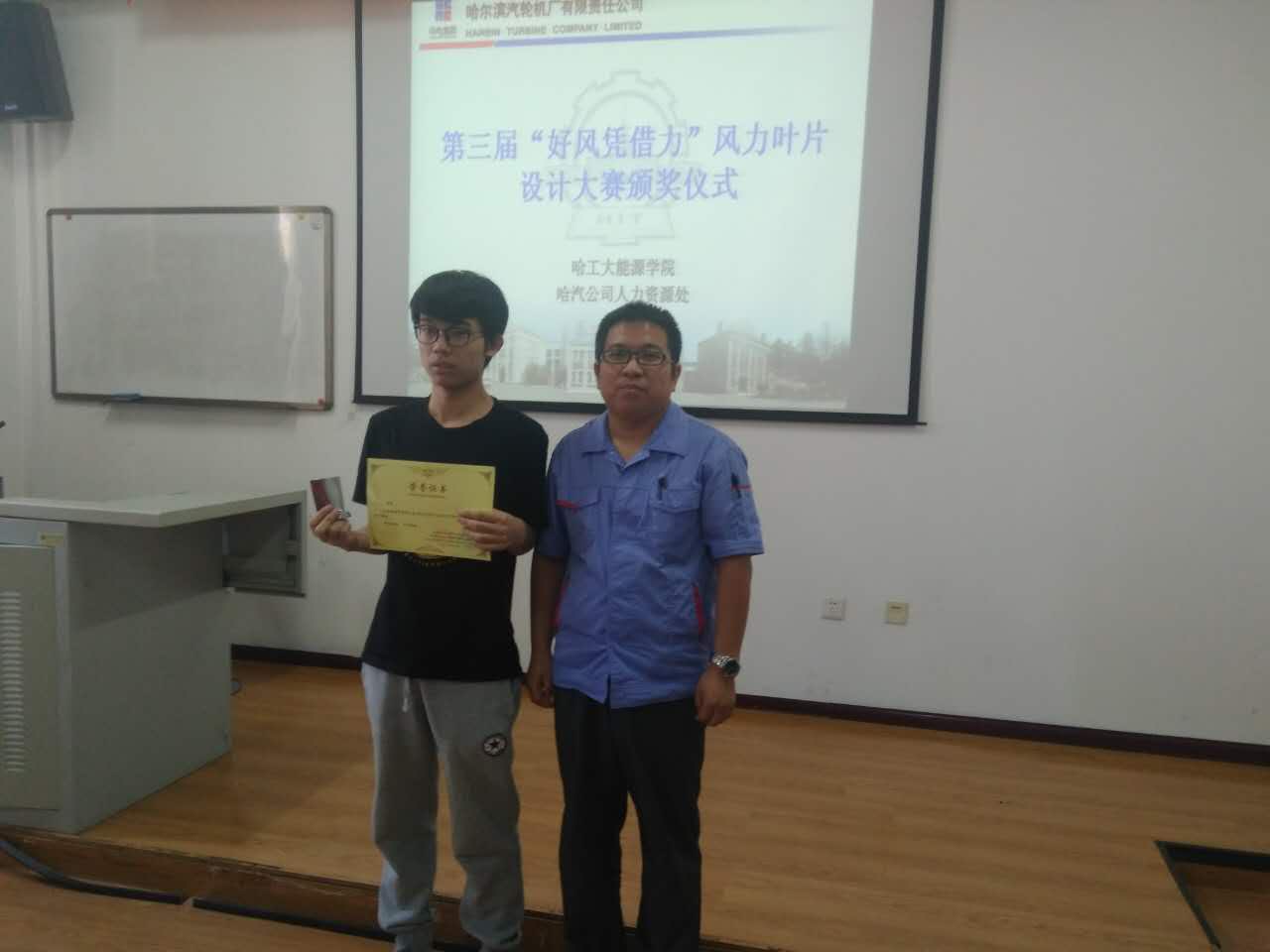 团委书记刘超、汽轮机厂人力资源处综合管理室主任王喜丽以及刘师兄为本次“好风凭借力”风力叶片设计大赛获奖的同学颁发了证书及奖品,本次参访活动圆满结束。