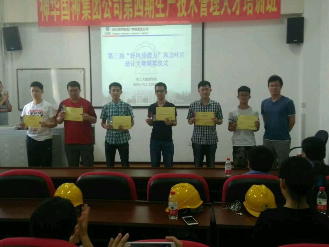第三届“好风凭借力”风力叶片设计大赛获奖团队代表一行25人赴哈尔滨汽轮机厂有限责任公司进行参观访问,并举行了大赛的颁奖仪式。