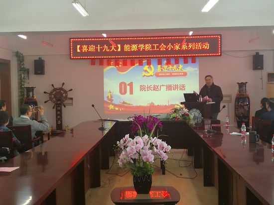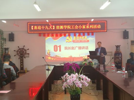 10月18日上午8:20,曾获“全国教职工模范小家”的太阳城网络赌博平台 工会在动力楼619成功举办喜迎十九大工会小家系列活动之收看党的十九大开幕式直播活动。校党委副书记、副校长、工会主席张洪涛,校工会常务副主席张国宏,太阳城网络赌博平台 党委书记田振辉,院长赵广播,党委副书记孙垠,院工会主席姜宝成及太阳城网络赌博平台 全体教职工参加了此次活动。