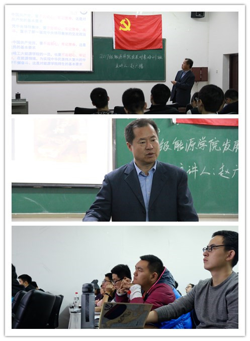 11月9日,太阳城网络赌博平台 分党校2017年秋季学期发展对象培训班第四讲在节能楼312顺利举办,本次党课以“不忘初心,牢记使命”为主题,太阳城网络赌博平台 院长赵广播教授主讲。