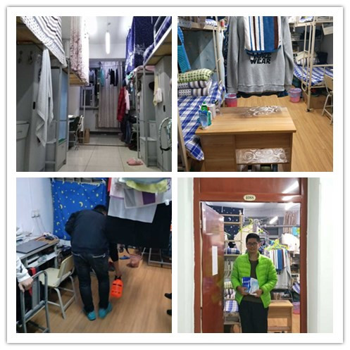 11月9日晚9:30,太阳城网络赌博平台 辅导员李威老师协同公寓干事王欣伟及各班生活班长,对2015级太阳城网络赌博平台 所有寝室开展卫生情况检查及文化建设评比活动。由于天气转冷,通风条件不理想,为防止细菌滋生、预防流行病的传播,辅导员李威老师与生活班长一起对寝室进行了细致的消毒工作。