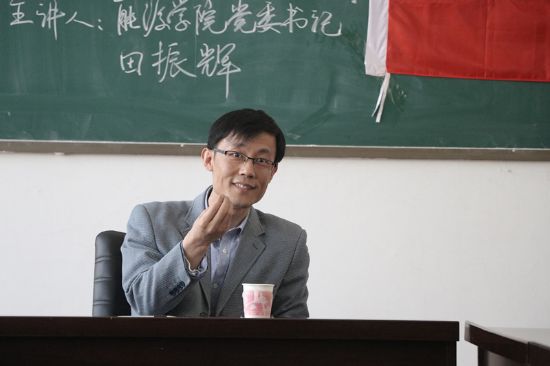 田振辉书记以“坚定理想信念,培育有为青年”为主题,为同学们讲授与解答青年及学生党员在大学期间遇到的困惑与选择。首先,田书记指出作为当代大学生,要有着明确的人生目标,要在大学期间树立起正确的世界观、价值观、人生观,紧跟上新时代的步伐。接着,他与学员们分享了他对于党员先进性的理解。他认为,学生党员要做到知行合一,为周围的人树立起榜样,要让党性深深的融入到生命里,让其成为一种本能。最后,田书记鼓励在座的学员,要努力学习,终身奋斗,一直对党和国家保持的高度的热情,给自己的信仰以支撑,为建设富强民主文明和谐美丽社会主义现代化强国贡献出力量。
