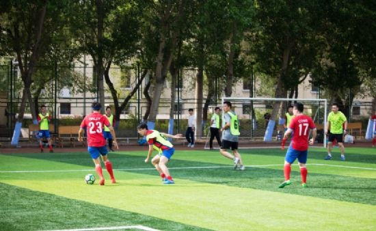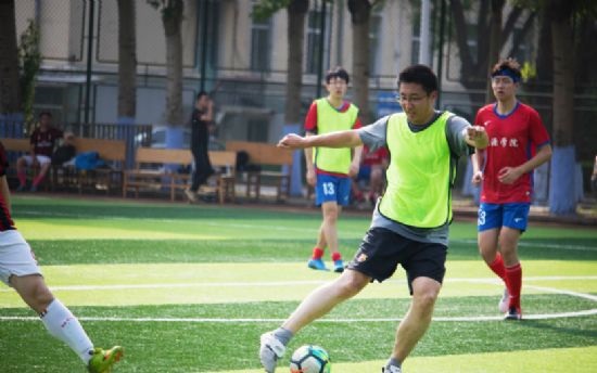 为更好地活跃校园体育文化氛围,促进学院内部足球爱好者联系交流,进一步增进师生友谊,5月13日,在一校区小足球场太阳城网络赌博平台 足球队承办的第一届能“阳光绿茵杯师生足球友谊赛”顺利进行。