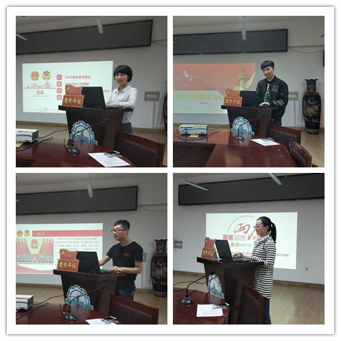 本期讲坛由党支部书记李国栋主持,四位同志分别从不同角度切入,和大家交流分享了自己的学习心得。王兴茹同学对政府工作报告进行了介绍,她认为政府工作报告中提出的一系列任务,都是事关改革和发展大局的热点、难点,充分的反映了人民的需求;伊贺楠同志作为新时代的大学生,始终对两会的最新动态保持关注,他讲到,这五年来,各项工作虽然面临严峻形势和挑战,但在以习近平同志为核心的党中央坚强领导之下,我国的经济社会发展取得了长足的进步;唐晓静同志深信,在习近平新时代中国特色社会主义思想科学指引下,我们的国民经济和社会发展会更上一层楼,中华民族的未来也更加充满期望,全面建设小康社会宏伟蓝图必将变为现实;王思敏同志表示自己将持续学习两会精神,继续严格要求自己,在思想上,不断加强思想政治修养锻炼,使自己能够鉴定好与坏、甄别正与邪,自觉抵制腐朽思想和不正之风的侵蚀,从而树立起正确的人生观、价值观和世界观。