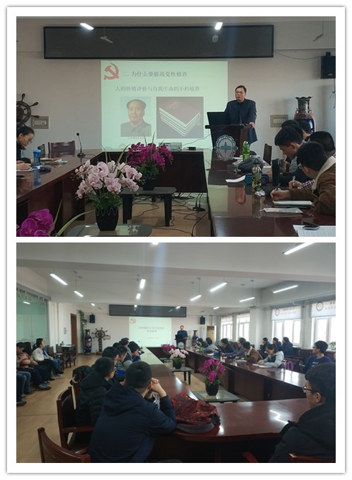随后孙书记为大家讲述了作为一名党员应该有的修养。重点介绍了作风修养问题。孙书记告诫同学们,每一名党员都是一面旗帜,要能够带动周围的同学进步,而不是注重形式与口头,要表现在行动上,不要做两面人。作为一名大学生党员,一定要对自己高标准严要求,要做到红专并进,做一个有思想有能力的人。关于如何提高党性修养方面,孙书记告诉同学们一定要注意提高个人核心竞争力,切记不要泛泛提高,一定要明白自己缺乏什么能力,再进行提高。此外,坚持和有责任心这两个品质一定要具备,一定要说到就要做到。