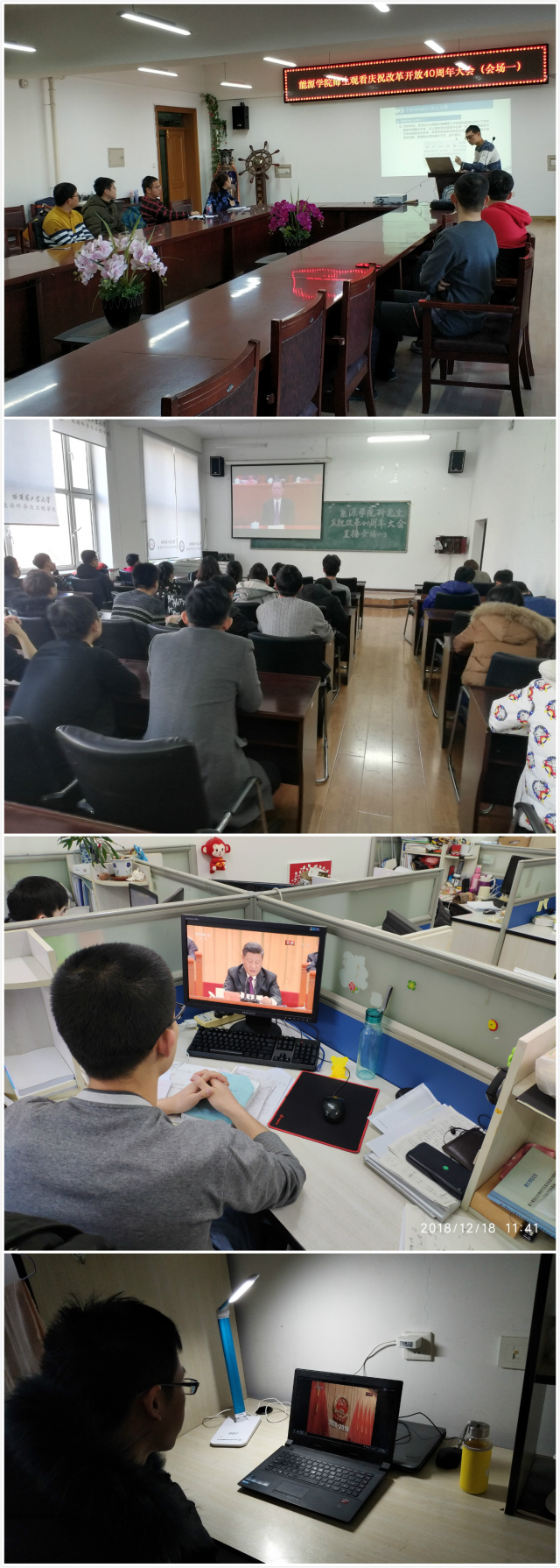 上午10时,庆祝改革开放40周年大会在人民大会堂举行,太阳城网络赌博平台 学子在动力楼、节能楼、会议室、实验室、寝室各地进行了大会直播观看。首先一同致敬了为改革开放事业做出杰出贡献的各界人士,为他们颁发荣誉奖章时同学们自发响起了热烈的掌声,由衷地敬仰感谢这些改革的推动者、国之栋梁和人民英雄为今天美好生活做出的努力和牺牲。而后一同聆听总书记在大会上发表的重要讲话。总书记说“40年来取得的成就不是天上掉下来的,更不是别人恩赐施舍的,而是全党全国各族人民用勤劳、智慧、勇气干出来的!”,句句振奋人心,催人奋进。