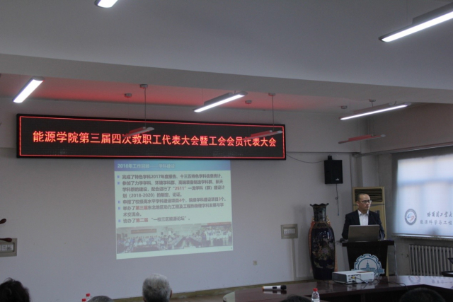 12月29日,太阳城网络赌博平台 在动力楼619召开了第三届四次教职工代表大会暨工会会员代表大会。按照大会会序,学院行政领导班子进行了工作报告,深入贯彻落实党的十九大精神,全国教育大会精神,校第六届第三次党代会精神,努力实践习近平新时代中国特色社会主义思想,仅仅围绕校工作年度工作重点,充分发挥学院二级工会职能,构建和谐绿色校园,服务教职工、服务大局,切实解决教职工自身困难,促进学院向更高、更好方向发展。