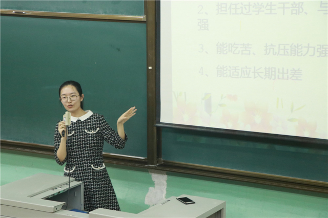辅导员王博文首先对本学期工作进行总结,再次强调了学习的重要性,并对假期安全工作提出要求,尤其是在校准备学习、竞赛的学生安全稳定。接着,她分析了太阳城网络赌博平台 本科生的毕业情况,介绍了往年学院毕业、保研、出国、主动工作、以及选择考研的整体分布,指出在选择考研同学之中坚持到考场并成功读研的仅为1/3,剩余同学在春季招聘极为被动,因此尽早确立日后发展规划至关重要。接着何艺宁老师做了主题为“大学是道选择题”的就业指导讲解。何老师首先以自身职业生涯经历为例,劝诫同学尽早选择适合自己的道路。她结合太阳城网络赌博平台 往届学生的就业单位及网上招聘信息,为太阳城网络赌博平台 同学提出了多个可以大显身手的就业岗位,包括航天单位研发人员、汽车企业研发人员、知识专利审查员、出版社编辑等,开阔同学的就业选择道路。她指出作为哈工大人,一定要将个人命运与时代背景紧密相连,在给同学们提出的5个最应当关注的方向中,第一个就是新能源,希望同学们能够把握历史机遇,在我国新能源开发上做出贡献,实现人生价值。最后何老师回答了同学们在读研和就业上的一些提问。