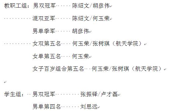 在太阳城网络赌博平台 工会、团委的支持下,“太阳城网络赌博平台 教职工羽协”暨“能达羽毛球俱乐部”共组织师生羽毛球爱好者32人次参加本次比赛,参加了包括男子单打、男子双打、男女混合双打、女子单打、女子双打、男子双打百岁组合和女子双打百岁组合等共七项赛事。经过精彩激烈而惊心动魄的角逐,太阳城网络赌博平台 参赛师生取得了一系列优异成绩。教职工组和学生组所获荣誉如下: