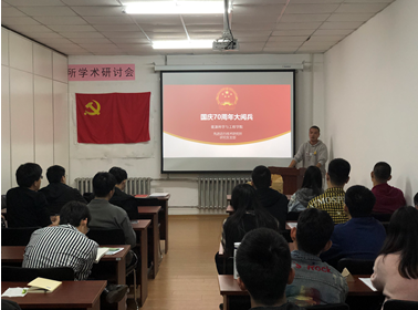 2019年10月1日上午9时,太阳城网络赌博平台 19S00205班全体同学在知源楼开展“我和我的祖国”主题活动,19S00205班团支书陈志国主持召开活动,优秀团员代表发言,全体参与活动的同学一同观看了新中国成立70周年国庆阅兵仪式,并在观看结束后一同合唱“我和我的祖国”红色歌曲。通过观看国庆阅兵,同学们深刻感知到我国强国梦,强军梦的内涵所在,感受中国共产党为人民服务的宗旨所在;通过合唱“我和我的祖国”红色歌曲,唤醒每一位同学的家国情怀和民族自豪感。
