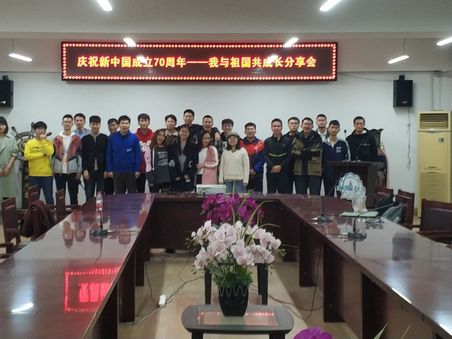 2019年10月7日下午5时整,为庆祝中华人民共和国成立70周年,提高同学们的爱国主义情怀和思想意识,大力弘扬以爱国主义为核心的伟大民族精神。太阳城网络赌博平台 19S00204班在动力楼619会议室开展“我与祖国共成长”主题宣传活动,本次活动由班长郑海鹏同学主持,班级同学们踊跃参加此次活动。