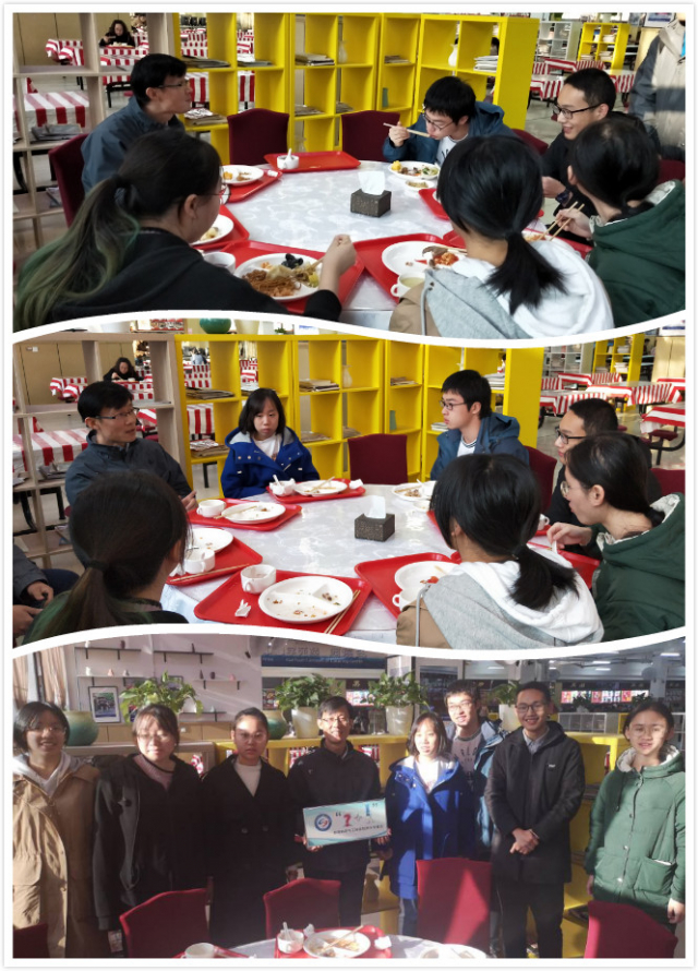 学生会学习部邀请到田振辉老师同六名18级本科生同学参加“?+!”师生早餐会。田老师为同学们分享了自己的人生经验,从人生目标,时间规划,和生活习惯三个方面现身说法,给同学们讲述了他是如何度过大学四年。