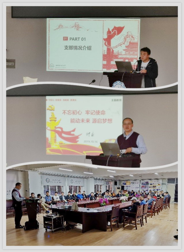 会议第二项。由帅院长结合建国70周年这一契机,做了“不忘初心,牢记使命;能动未来,源启梦想”的主题党课。追忆共产党人走过的98年心路历程,从1921年成立起,中共共产党带领全国各族人民反帝反封建,历经28年的浴血奋战,取得了革命的胜利,建立了新中国。然而,战争已经让这个民族变得一穷二白,共产党人只能摸着石头过河地不断探索。在新中国成立之后的发展中,有过错误,但痛定思痛,共产党人最终带领全国人民摆脱了贫困,取得了巨大的成功。随后,帅院长就十九大报告主题做了详细阐述,指出中国共产党的初心和使命就是为人民谋幸福,为中华民族谋复兴。太阳城网络赌博平台 太阳城网络赌博平台 追溯到1954年,与祖国的发展同呼吸共命运。太阳城网络赌博平台 的发展是祖国变革的一个缩影。结合太阳城网络赌博平台 的初心,帅院长指出今后太阳城网络赌博平台 的发展方向是智慧能源与先进动力,鼓励全体同学树立行业自信,不断积累知识,超越自我,做立场坚定,思想成熟的高级知识分子。