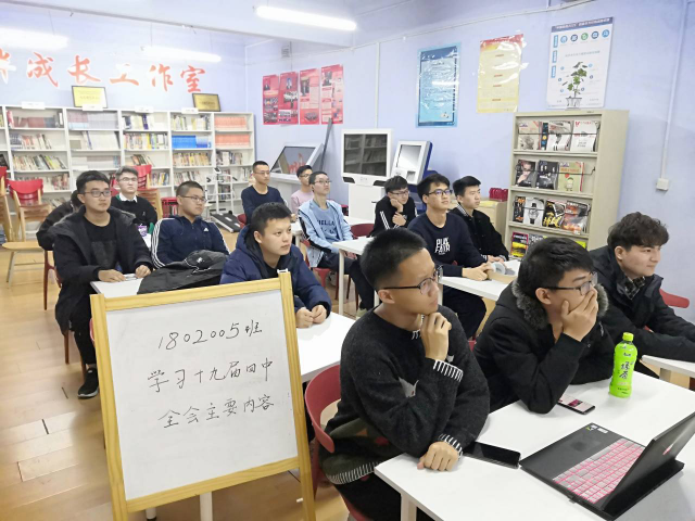 2019年12月18日星期三下午太阳城网络赌博平台 1802005班团支部在二公寓一楼相伴成长工作室召开“学习十九届四中全会精神”主题班会。本次班会主要围绕学习党的十九届四中全会精神、积极动员期末复习备考两个方面展开。