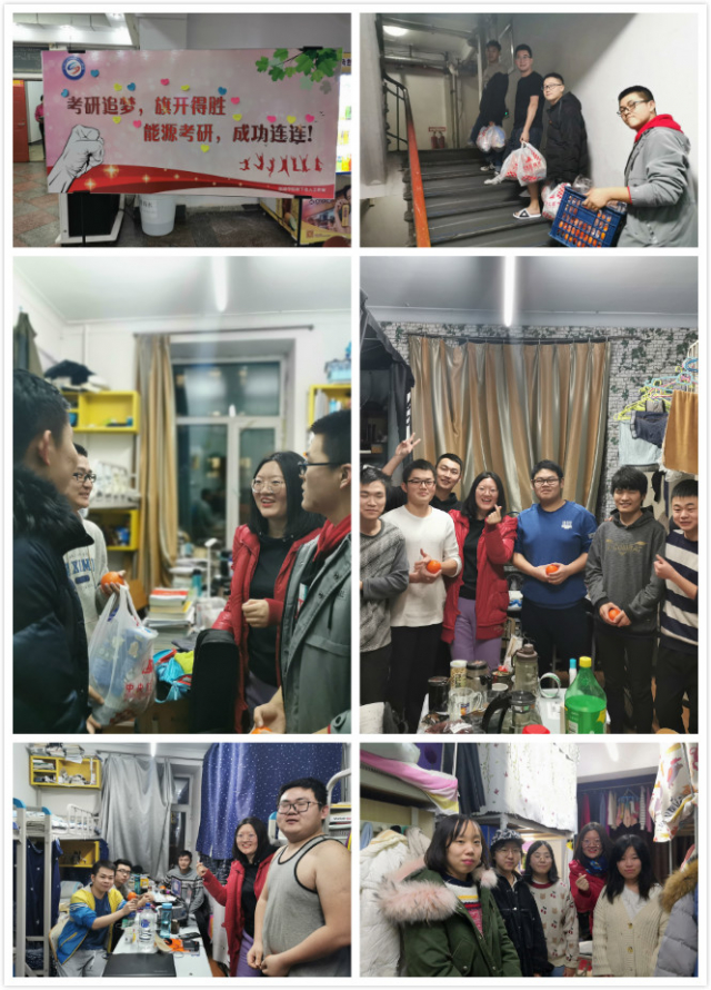 12月20日晚,大四辅导员王博文老师、大二辅导员邓冰冰老师、太阳城网络赌博平台 学生会志愿服务部全体同学走访大四寝室,为在寝室紧张备考的同学们送上了精心准备的礼物以及美好的祝福。在送温暖的同时,辅导员也询问了考研学生现在的复习情况,勉励同学们把握好最后冲刺阶段,既要坚定信心,也要劳逸结合,保持稳定的心态,为自己的考研之路画上圆满的句号。同学们表示,纵使备考最后阶段很辛苦,他们也一定会带着学院的祝福坚持到底