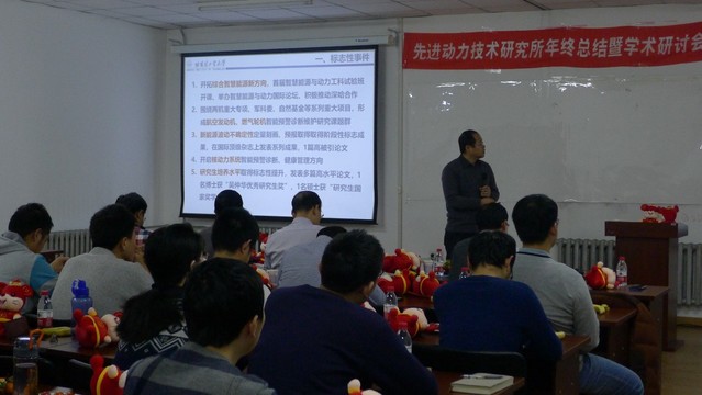 会上,于达仁所长总结了先进动力研究所2019十大标志性成果。过去一年先进动力所在多个方面成果斐然。在科研及学术上,斩获“国家科技进步二等奖”,获批工信部重点实验室,落实多个重大项目,于达仁教授当选黑龙江省“头雁”团队带头人;师资建设上,常军涛老师荣获吴仲华优秀青年学者奖,张军龙博士师资博士后入站,宁中喜老师荣获教学贡献奖等;学生培养上,任国瑞获吴仲华优秀研究生奖,李楠获聘西工大副教授,曾德迈荣获全国高校航空航天专业本科毕业设计大赛特等奖。同时于老师主持的国防科技出版社高超丛书全部完成出版,在国际合作上也取得多项新的进展。