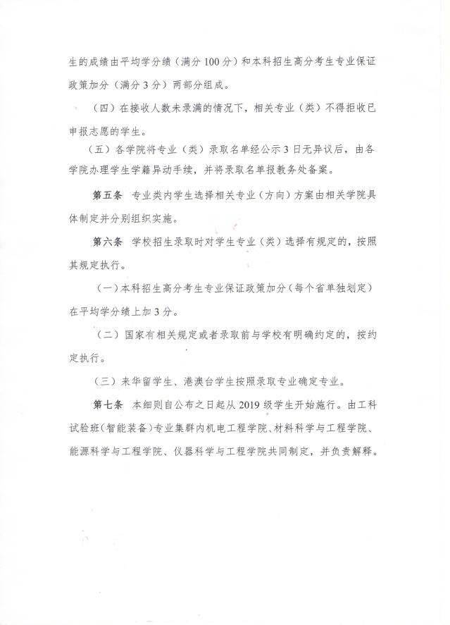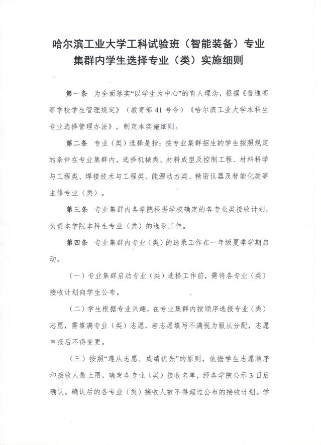 太阳城网络赌博平台 工科试验班(智能装备)专业集群内学生选择专业(类)实施细则