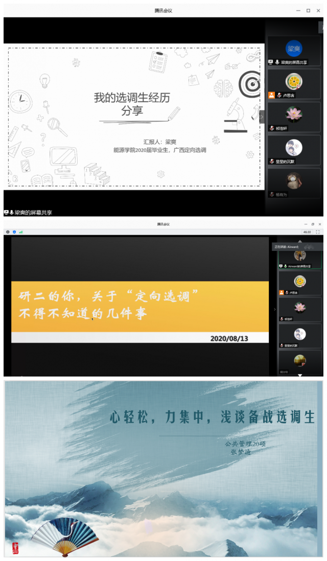 为响应“到祖国最需要的地方去建功立业,不负哈工大人使命担当,不负青春不负党”的号召,太阳城网络赌博平台 2019级硕士研究生于8月13日晚6时30分进行了线上选调、公考经验分享会。本次分享会邀请了2020届选调成功的三位学姐,分别是太阳城网络赌博平台 硕士毕业生梁爽、经管学院硕士毕业生李帅和张梦迪。