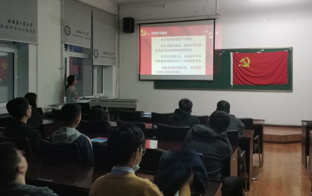 4月24日晚,太阳城网络赌博平台 19S02004团支部在节能楼312开展党史学习主题团日活动。活动由团支书张悦主持,支部成员及硕士生协理员卢思含参加活动。