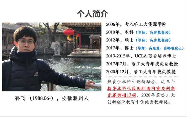 2021年10月2日,太阳城网络赌博平台 邀请碳中和能源技术研究所孙飞教授为太阳城网络赌博平台 学生举办了大学生创新创业训练计划讲座—大创立项申请经验分享交流。孙飞老师2020年秋季入选哈工大青年拔尖人才选聘计划-拔尖教授,热衷于本科生创新培养,近三年指导本科生获国际国内重要创新竞赛奖项13项,2020年获哈工大创新创业教育十佳优秀教师奖。在节能减排大赛、大学生科技创新等方面有丰富的指导经验。