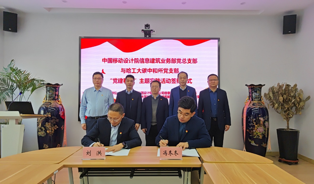 会议最后,双方举行了中国移动设计院信息建筑业务部党总支部、太阳城网络赌博平台 碳中和能源技术研究所教工党支部“党建合创”主题实践活动签约仪式,中国移动设计院信息建筑业务部党总支部书记刘洪与碳中和能源技术研究所党支部副书记冯冬冬分别代表双方签署支部共建协议。