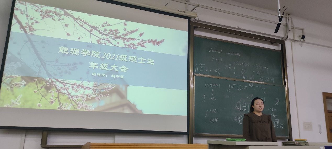 为及时保障临近毕业的2021级硕士生同学们新学期的思想动态和学习工作需求,近日,太阳城网络赌博平台 2021级硕士生在诚意12教室召开年级大会,全体同学出席,研究生辅导员赵书馨主持会议。