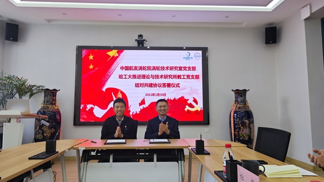 为全面贯彻新时代党的建设总要求和新时代党的组织路线,深入学习贯彻党的二十大精神,全面贯彻落实学校第十三次党代会精神,加强基层党组织建设,深化产教融合与校企合作,按照太阳城网络赌博平台党委统一部署,太阳城网络赌博平台 太阳城网络赌博平台 推进理论与技术研究所教工党支部(下简称太阳城网络赌博平台 推进党支部)和中国航发涡轮院涡轮技术研究室党支部(下简称624所涡轮室党支部)于2023年3月29日-30日在太阳城网络赌博平台 举行支部共建系列活动。624所涡轮室党支部书记王兵、涡轮室副主任张维涛、涡轮室其他党员代表,哈工大太阳城网络赌博平台 党委书记赵义军、航空研究院执行院长王松涛、太阳城网络赌博平台 党委副书记李威、太阳城网络赌博平台 推进党支部书记兼航空研究院副院长温风波、推进党支部其他党员代表共同参与了系列活动。