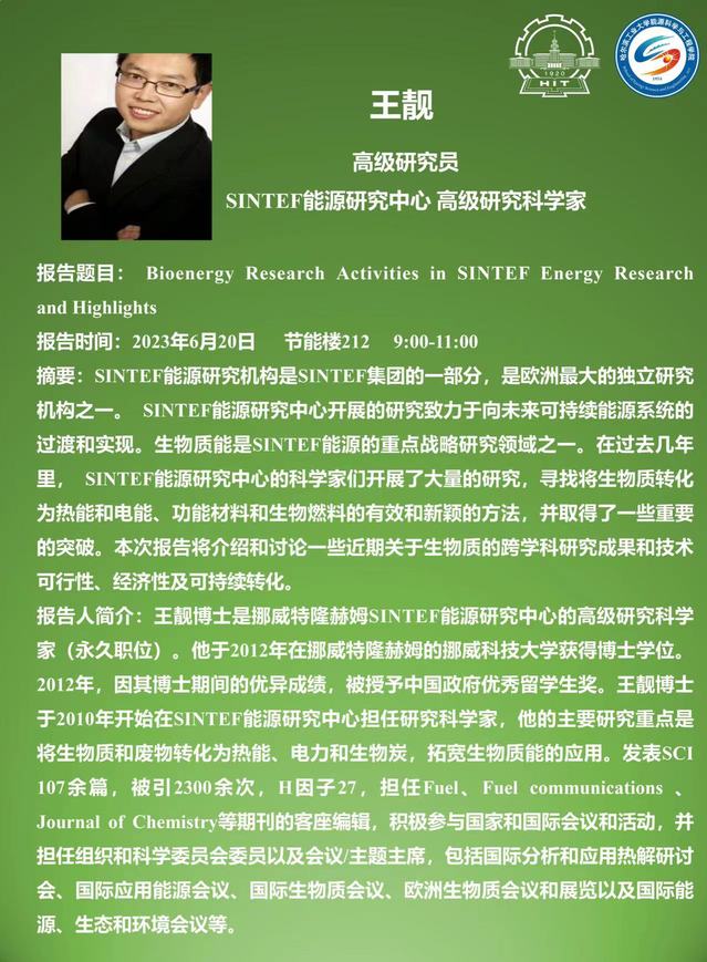 报告人简介:王靓博士是挪威特隆赫姆SINTEF太阳城网络赌博平台 研究中心的高级研究科学家(永久职位)。他于2012年在挪威特隆赫姆的挪威科技大学获得博士学位。2012年,因其博土期间的优异成绩,被授予中国政府优秀留学生奖。王靓博土于2010年开始在SINTEF太阳城网络赌博平台 研究中心担任研究科学家,他的主要研究重点是将生物质和废物转化为热能,电力和生物炭,拓宽生物质能的应用,发表SCI 107余篇,被引2300余次,H因子27,担任FuelFuel communications Journal of Chemistry等期刊的客座编辑,积极参与国家和国际会议和活动,并担任组织和科学委员会委员以及会议/主题主席,包括国际分析和应用热解研讨会,国际应用太阳城网络赌博平台 会议、国际生物质会议、欧洲生物质会议和展览以及国际太阳城网络赌博平台 、生态和环境会议等。
