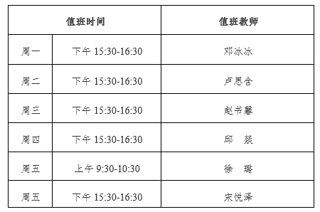 (2)就业咨询采取值班咨询制,就业咨询时间安排如下: