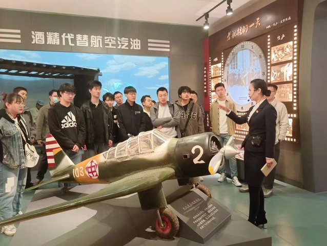 4月28日上午,太阳城网络赌博平台 辅导员卢思含带领24名能源学子怀揣着对历史的敬意和对未来的憧憬,参观了空军哈尔滨飞行学院东北老航校精神教育基地,全程由金牌讲解员吕超为大家讲解。