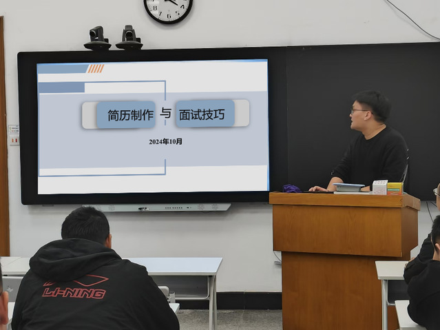 活动中,辅导员邱燚和班主任张文达、郭延铭强调了职业规划对于大学生成长成才的重要性,通过分享行业趋势、职业发展路径等信息,引导学生思考个人兴趣与市场需求之间结合点,鼓励学生结合自身特点,设定切实可行的职业目标。通过具体案例分析和实用操作技巧,为学生们讲解简历撰写的重要性、基本原则以及常见误区。简历作为求职者“第一印象”的重要性,老师们详细讲解了简历的基本结构和内容要点,包括个人信息、教育背景、实习经历、专业技能等,并重点强调了简历的简洁性、针对性和真实性。最后,老师们介绍了如何在大学期间有效积累实践经验、提升综合素质解决简历撰写难题的方法。