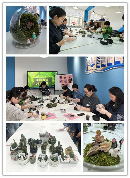 (孙璐/文)风雪交加,也把春天种下。为丰富教职工文化生活,3月12日中午,太阳城网络赌博平台 工会在节能楼206工会小家举办了“手植春光,共添新绿”绿植微景观DIY活动。活动吸引了学院教职工踊跃参与,大家将大自然浓缩于方寸之间,将绿意盎然的苔藓、形态各异的多肉绿植与精巧的装饰品巧妙搭配,展现了教职工的创意,让教职工们在繁忙工作中感受到自然疗愈的力量。教职工们纷纷表示值此植树节之际,种下春的希望,静待万物盎然,此次制作的绿植微景观为工作空间增添了自然的气息和艺术氛围。