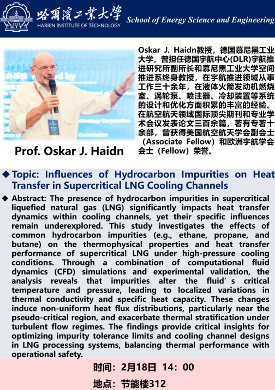 【讲座预告】Influences of Hydrocarbon Impurities on Heat Transfer in Supercritical LNG Cooling Channels